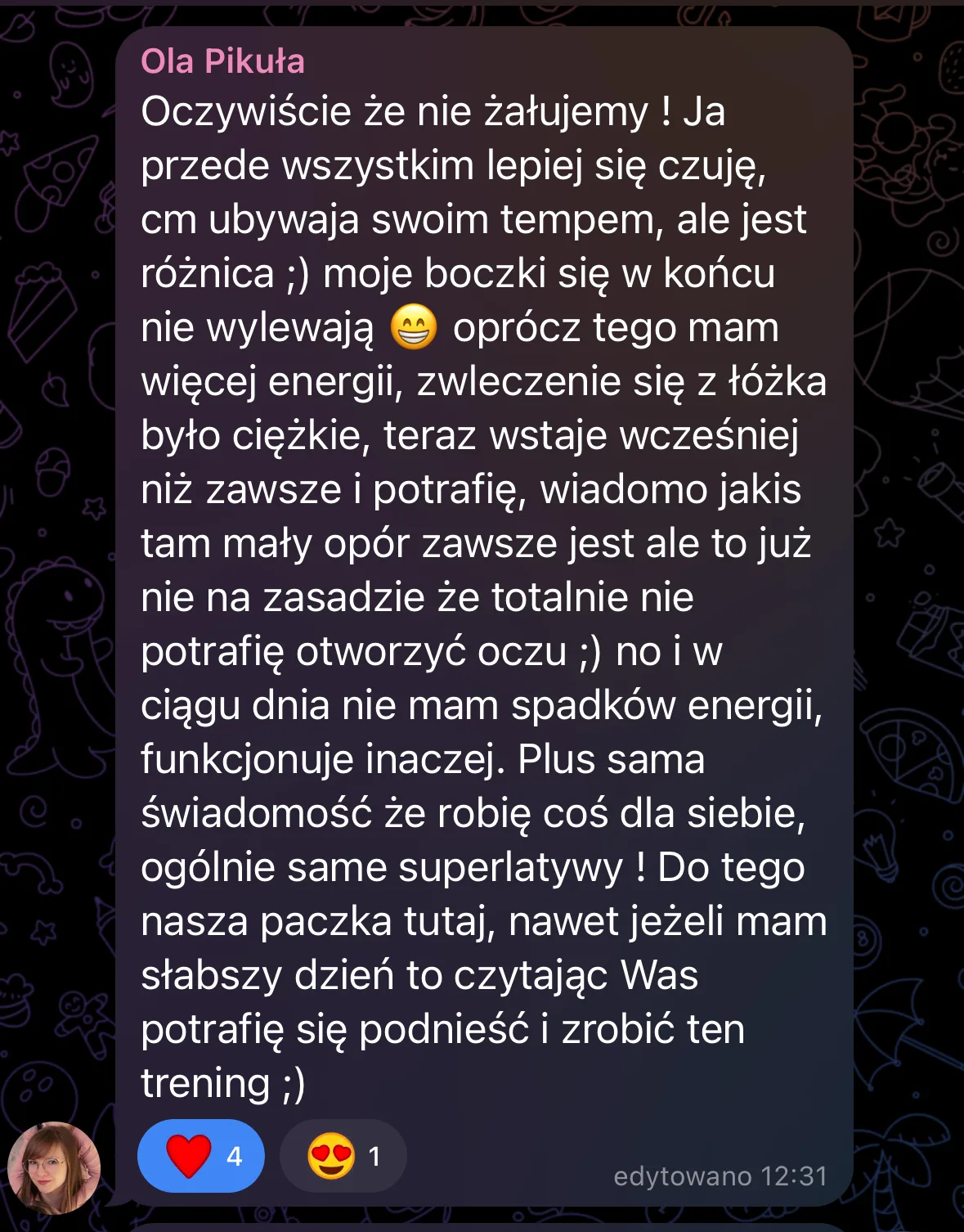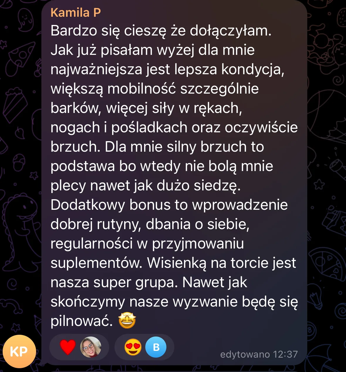 Masz przez 3 tygodnie trenera w swojej aplikacji i możliwość napisania do niego w każdej chwili w komentarzach na naszej grupie – na wszystkie odpowiadam
